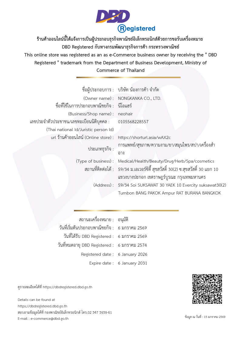 สต๊อกแน่น พร้อมส่งตรงถึงมือคุณ สัมผัสประสบการณ์ดูแลเส้นผมอย่างมืออาชีพ จากศูนย์จำหน่ายอย่างเป็นทางการ มั่นใจได้ในทุกขวด มั่นใจได้ในทุกการเปลี่ยนแปลง🌱 เพราะเรารู้ดีว่า "สิ่งที่ดีที่สุด...ไม่จำเป็นต้องดังที่สุด แต่ต้องได้ผลที่สุด"เลือก Neo Hair Lotion — เลือกอนาคตของเส้นผมที่แข็งแรง เงางาม และเต็มเปี่ยมด้วยชีวิต